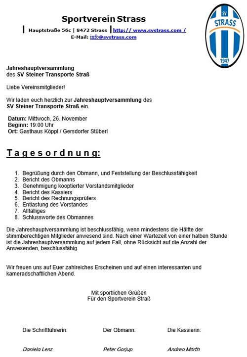Passend zum Saisonstart möchten wir unseren neuen Vereinsnamen vorstellen, der ab sofort offiziell geführt wird: SV Steiner Transporte Straß Dahinter steht Gerald ...